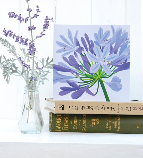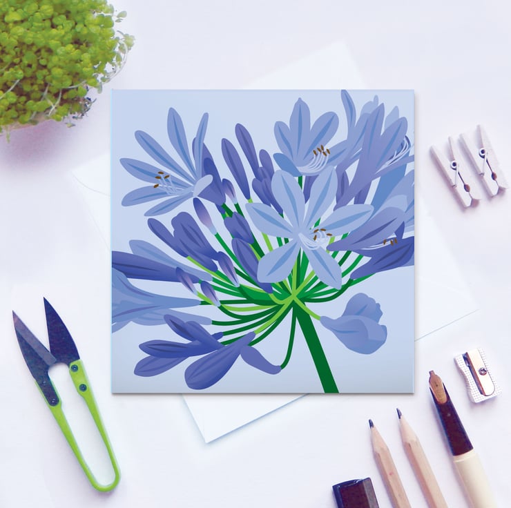 Beautiful blue floral Agapanthus card - perfect for summer birthdays or Mothers Day!