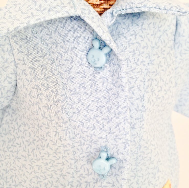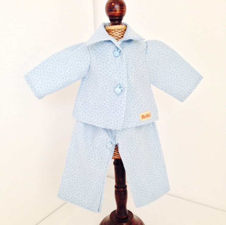 A lovely pair of pyjamas for a 42cm doll. The pyjamas are made from soft cotton with a pretty sprig print and have little rabbit buttons.