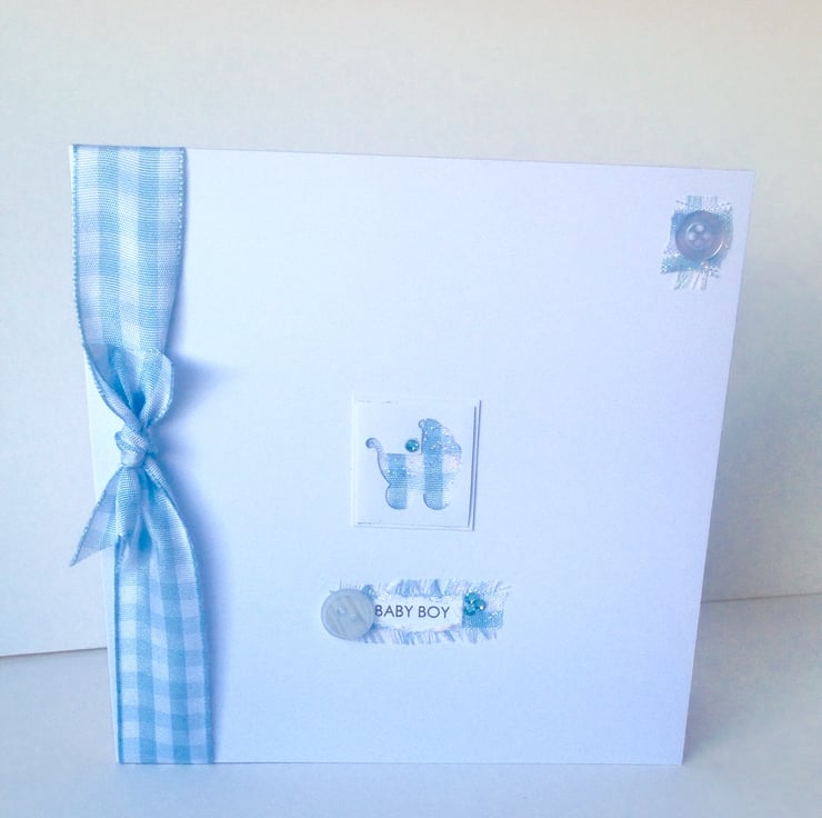The listing is for a handmade greeting card, for a new baby boy, it can be personalised.