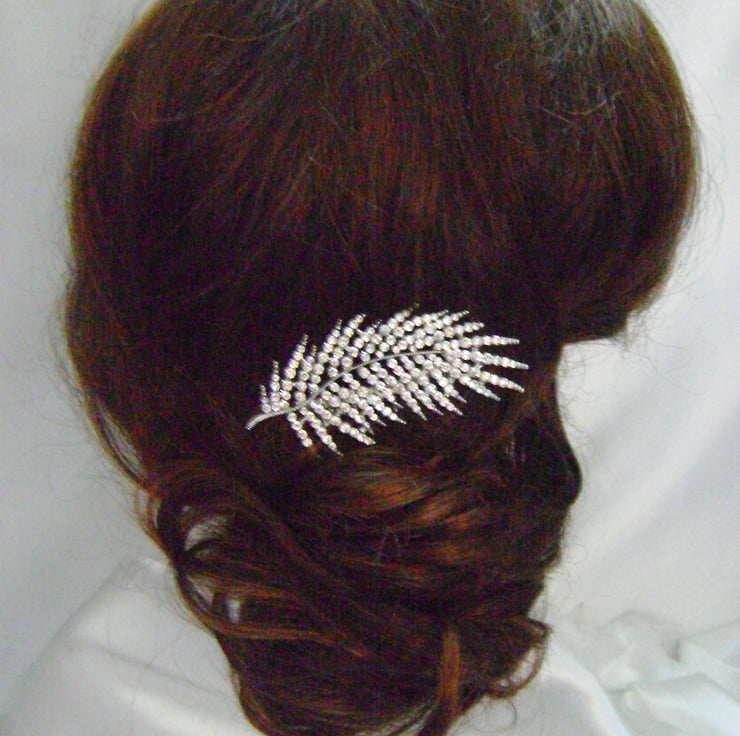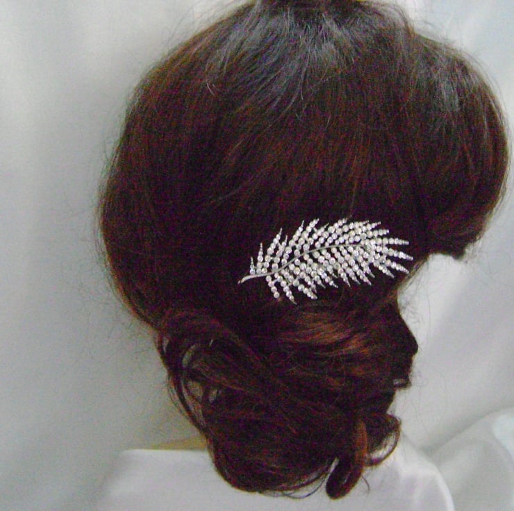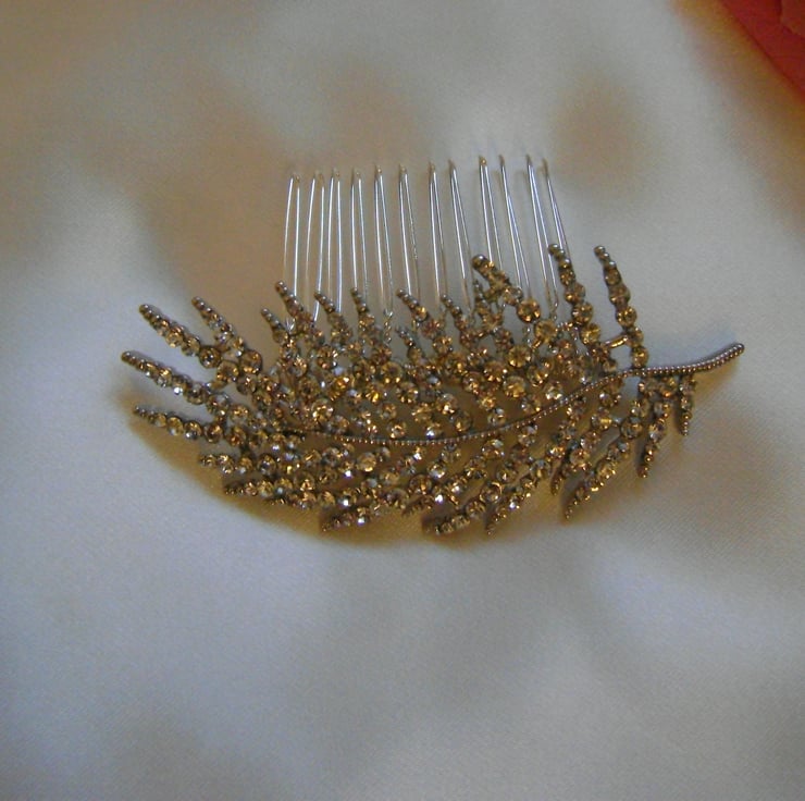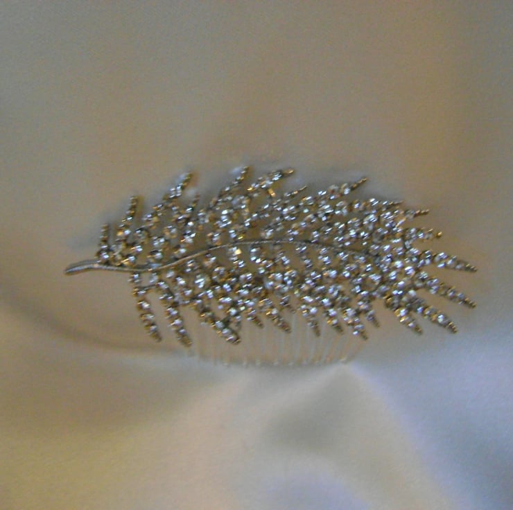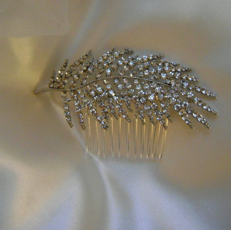Orla - A Simply beautiful Diamante Bridal Comb. Created with a shimmering diamante leaf design that measures approx 3.4" / 8.5cm and complimented with a silver plated 2" / 5cm comb.