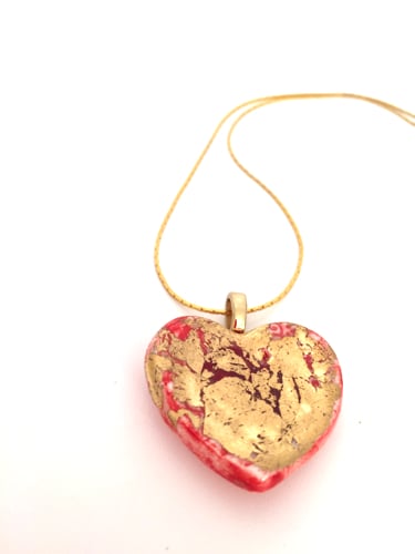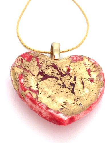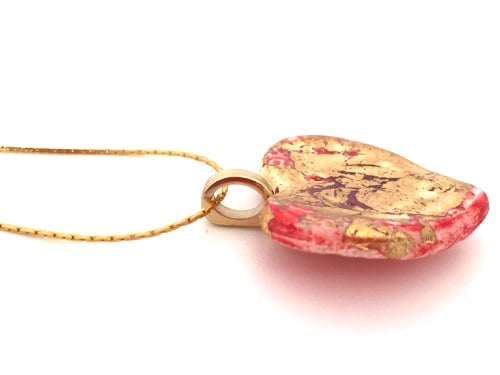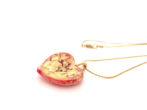 This porcelain heart has been lovingly hand-shaped and textured with red glaze and glass before being kiln fired. A layer of gold has then been applied to give a rich lustrous finish.