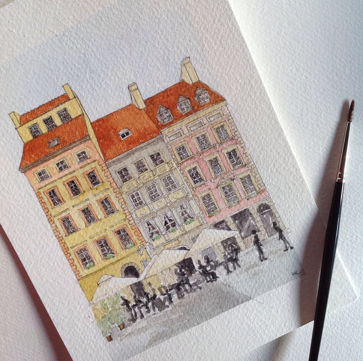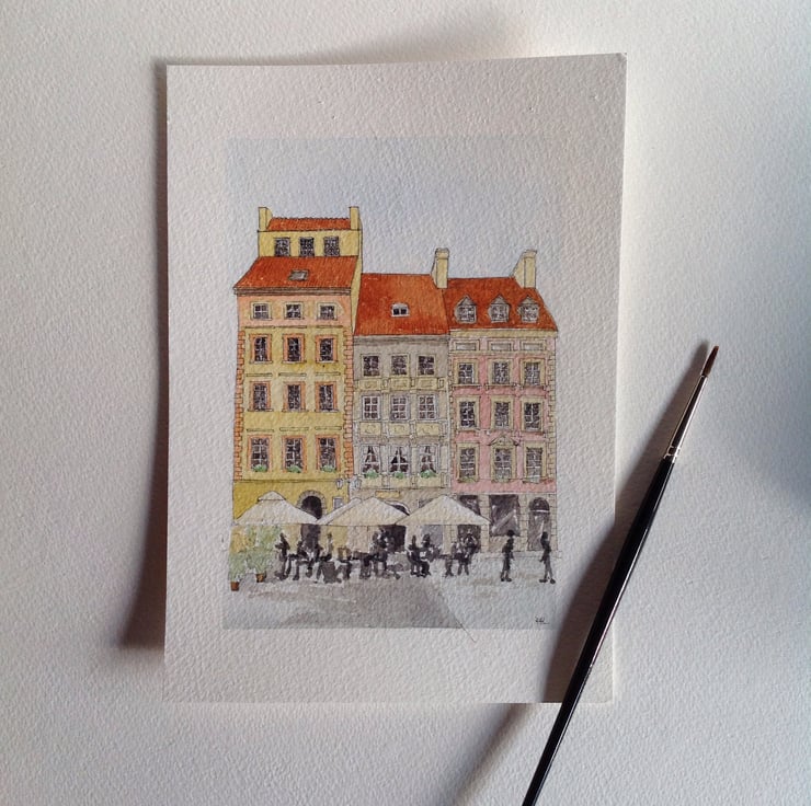 Inspired by holidays in Belgium and sitting in beautiful surroundings drinking coffee, this is an A5 watercolour measuring 21 x 14.8 cm (5.8 x 8.3 inches). It is an original painting, NOT a print.