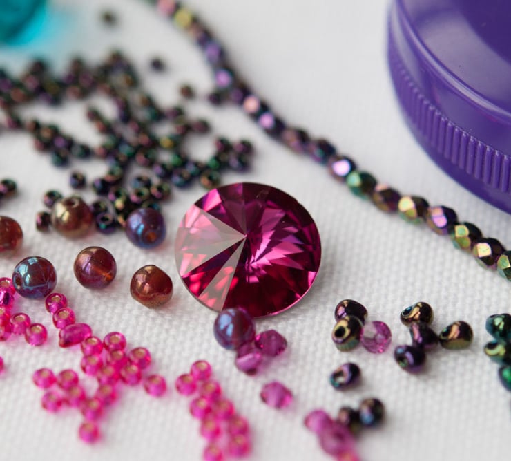 All of the beads you need to make one of my Baroque Tape Measure Srrounds, plus the right tape measure. The pack includes Swarovski Rivolis; Swarovski Bicones; Miyuki seed beads and drops; Czech fire polished crystals and round beads and bonus feature beads from my collection, so you can design and make your own unique tape end using the techniques you've just tried.