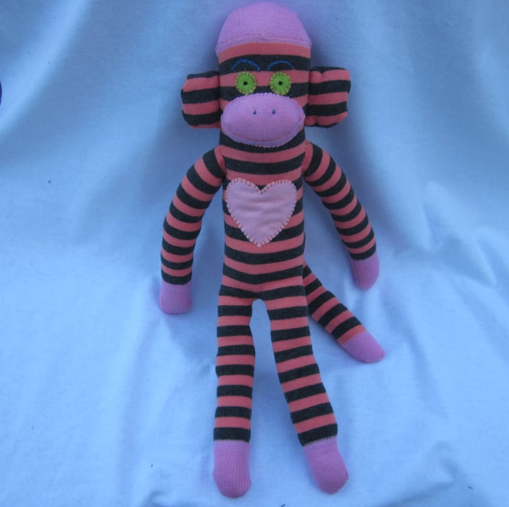 I love making socks monkeys! They all have such individual characters, depending on the fabrics used and the facial embroidery employed. Each has it's own personality and no two are alike.
