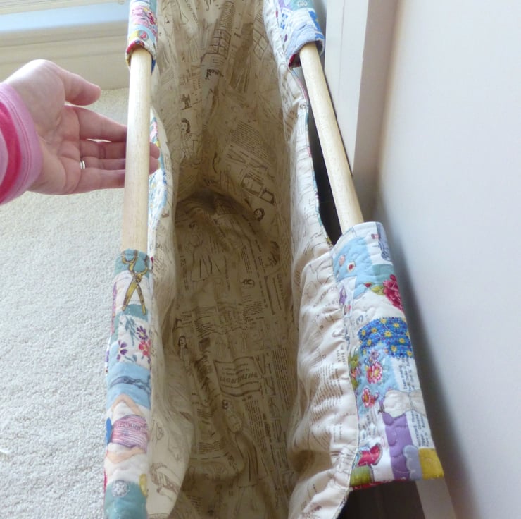 Finding it impossible to buy a pattern for a suitable bag that could be made in different sizes, I designed the "Sew Retro" tote, so called because of the fantastic fabrics I used for the bag and lining.
