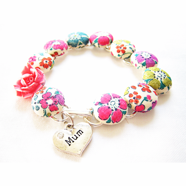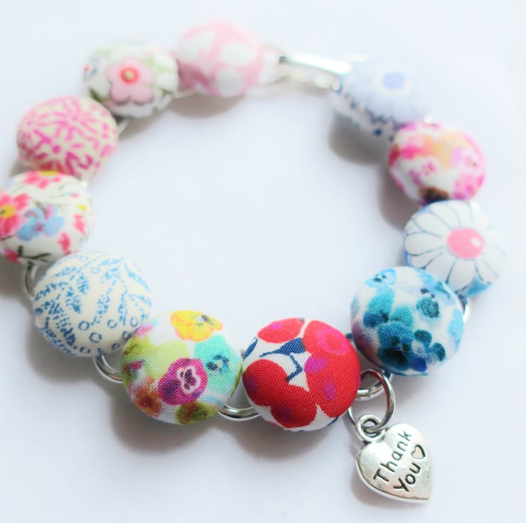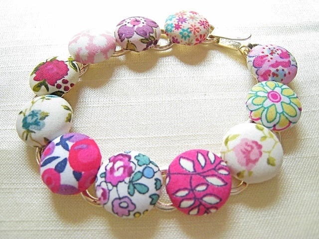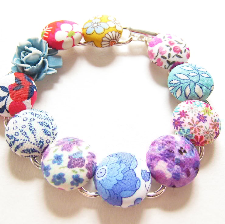 Liberty London fabric button bracelet featuring various fine weave tana lawn art fabrics.