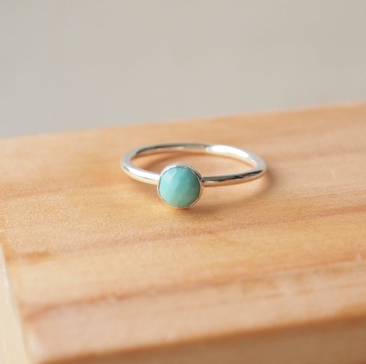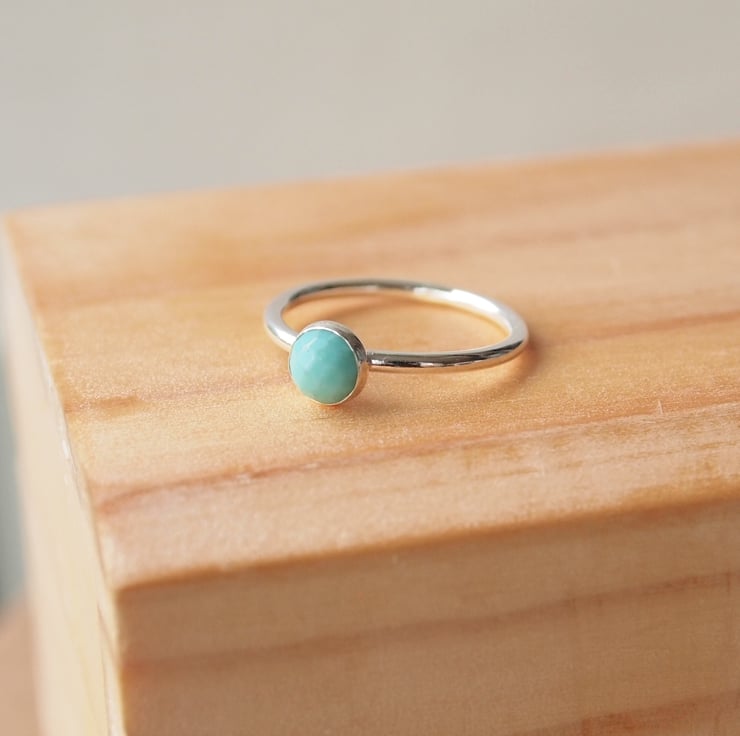 Turquoise Cabochon Sterling Silver Stacking Ring. Turquoise is the birthstone for December.