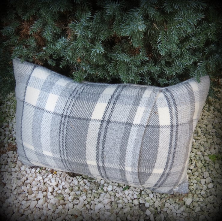 There is a deep envelope opening to the back of this cushion, which is the same tartan wool as the front.