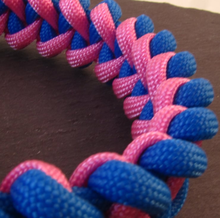 This paracord bracelet is made using the Shark Jaw Bone knot. This is a knotting technique that is similar to macrame.
