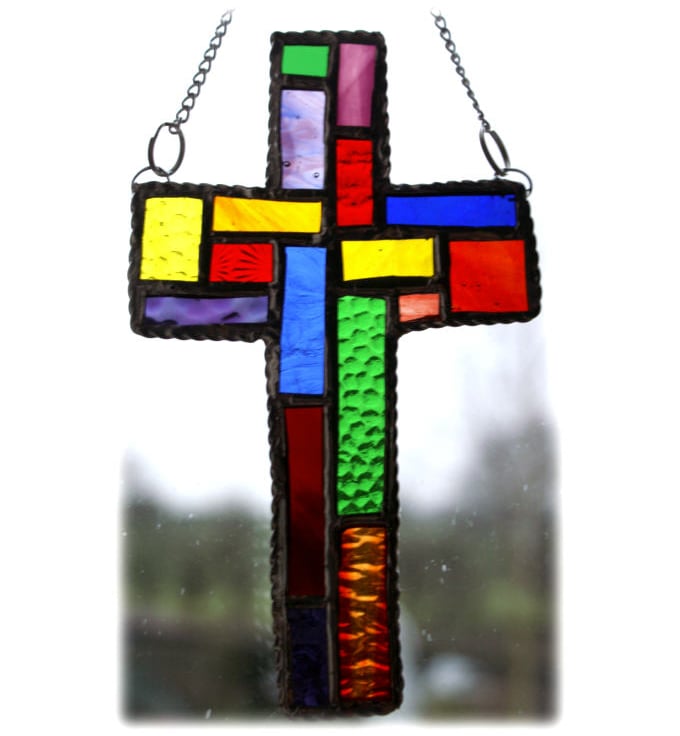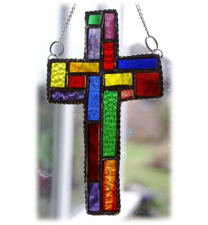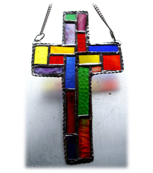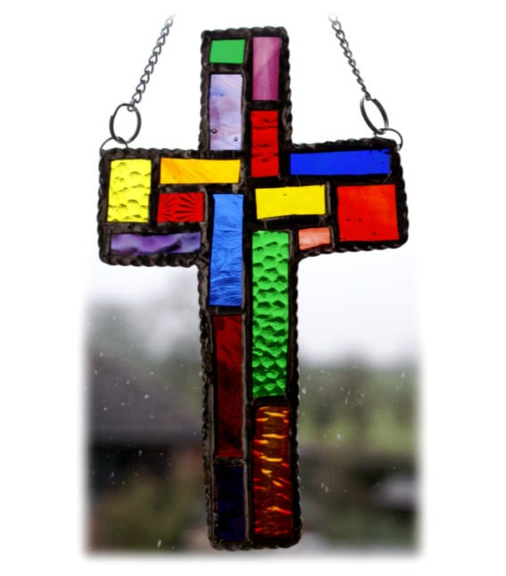 I've tried to incorporate the design of a modern stained glass church window into a classic cross shape.