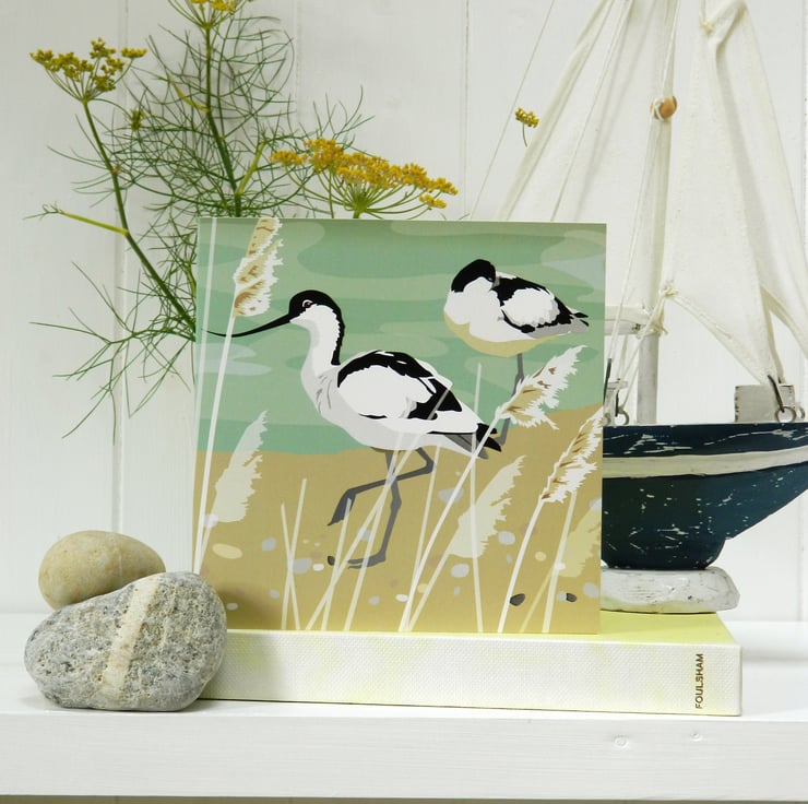 Pretty Avocets card - perfect birthday card for bird watchers or anyone who loves wildlife and the seaside! If you are lucky you can spot these elegant birds on the Great British coast.