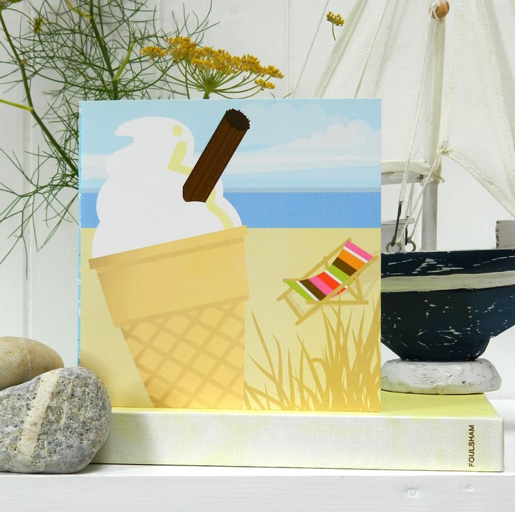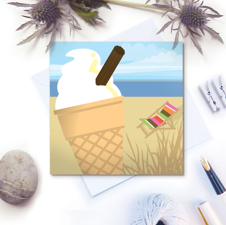 Everyone loves Ice creams on the beach! This ice cream seaside card will bring back happy memories of lazy days on the beach with picnics and ice cream! Prefect for summer birthdays or for anyone who loves the seaside or ice cream!