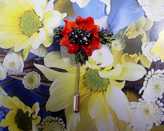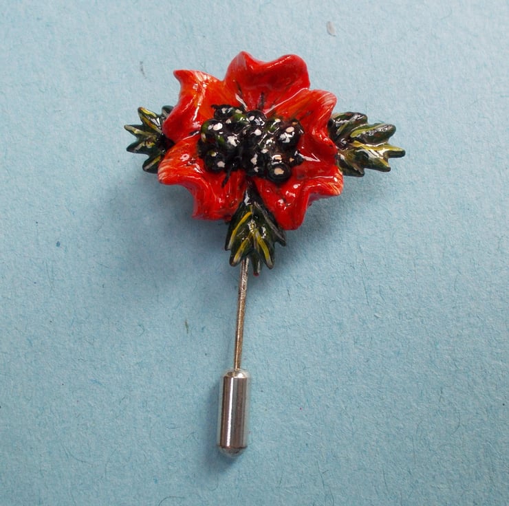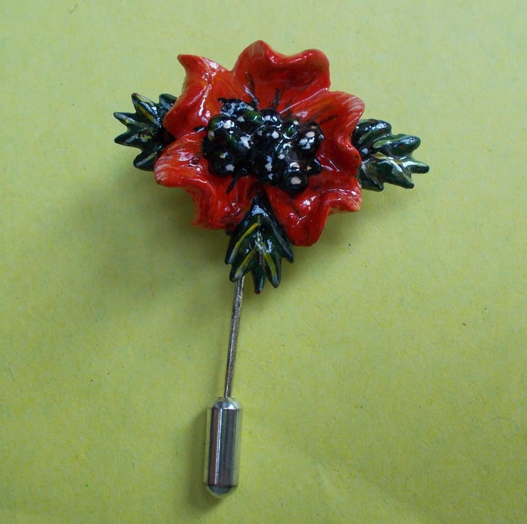 You are looking at a variation of one, of my most popular Designs----The SINGLE RED POPPY AND LEAVES STICK PIN....... Lapel Flower Brooch.