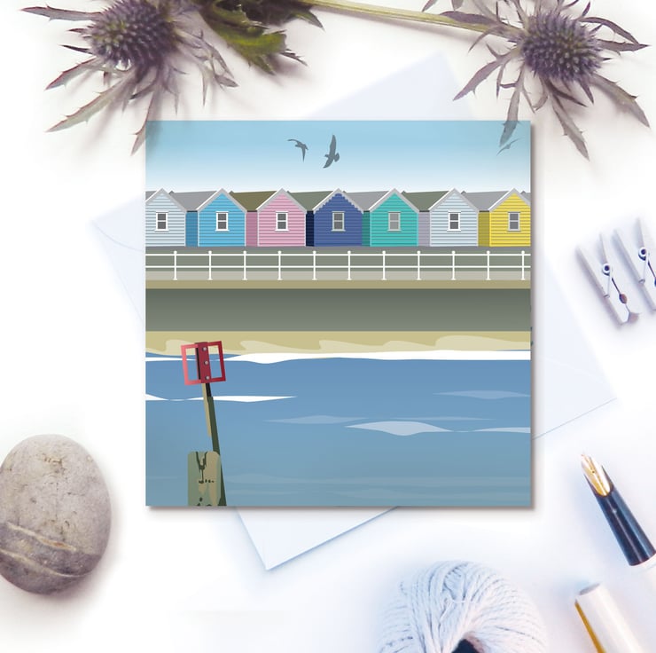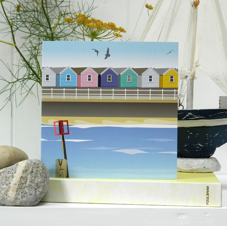What a great view of the beach huts on this card - captured by standing on the end of the Pier looking back at the shoreline with it's pretty pastel beach huts! Perfect for summer birthdays, or for anyone who loves the seaside or beach huts!