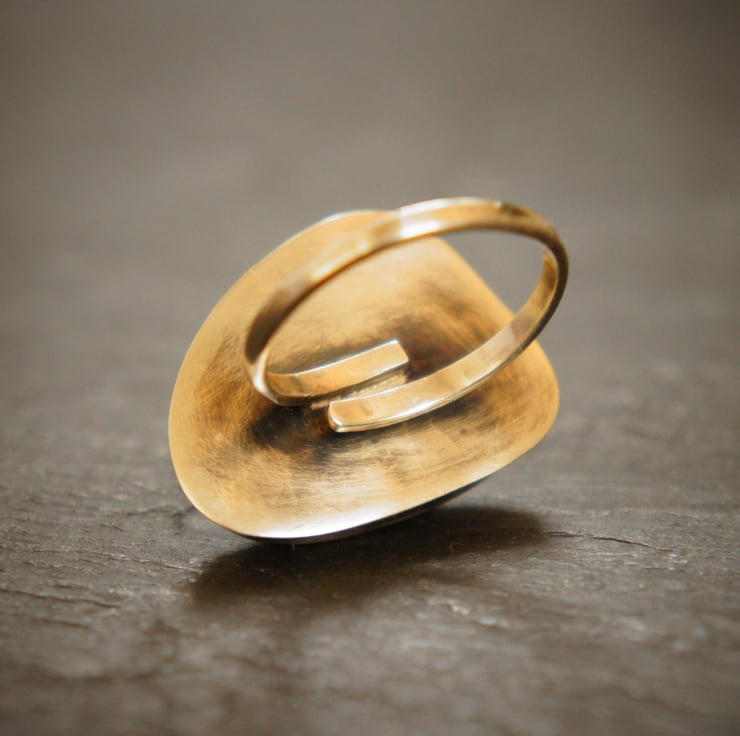 The ring size is adjustable, from smallest up to a US size 8, UK P 1/2.