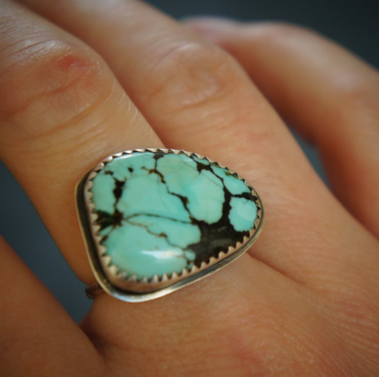 A Navajo inspired Pure Turquoise and Sterling Silver ring.