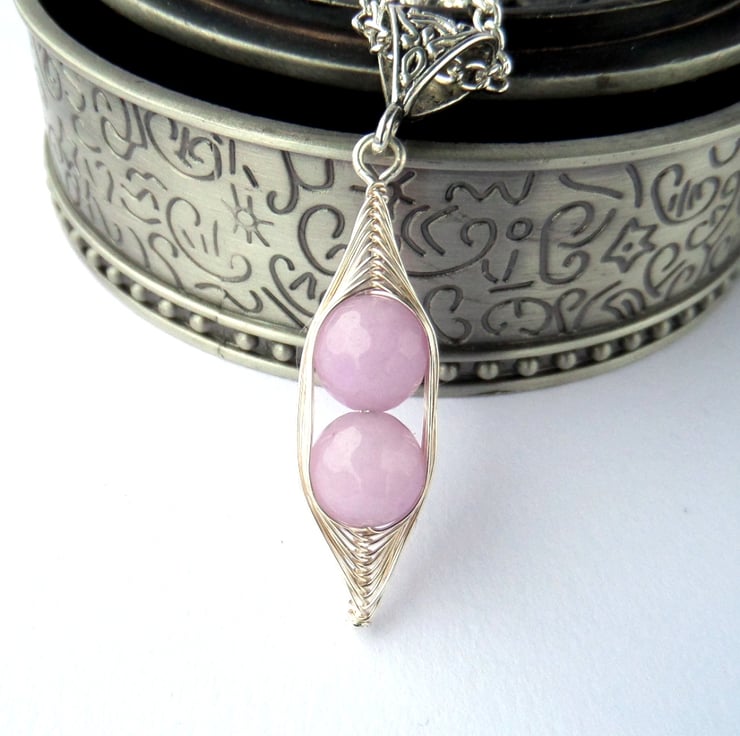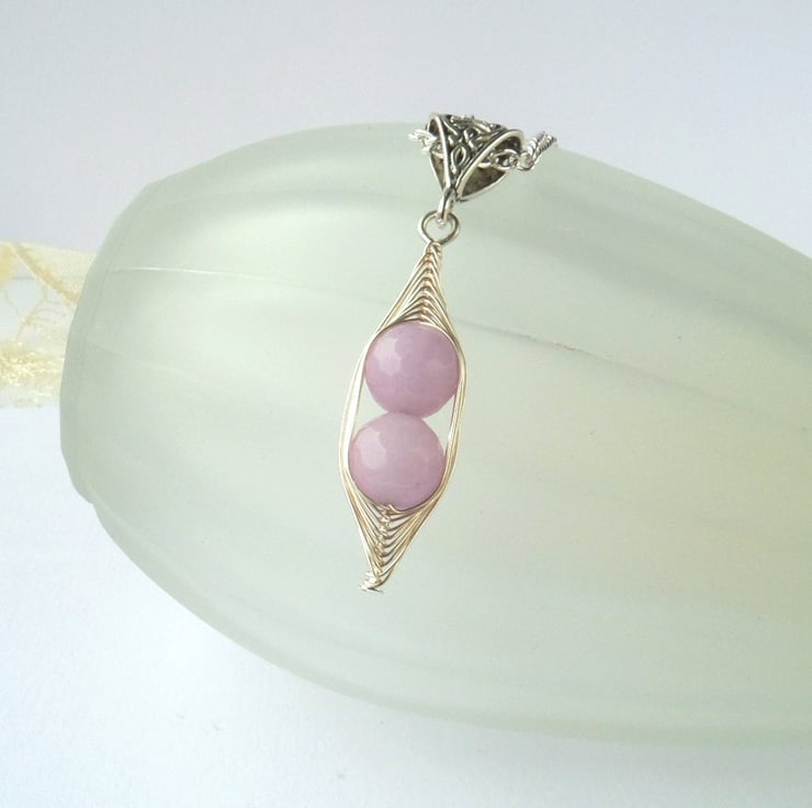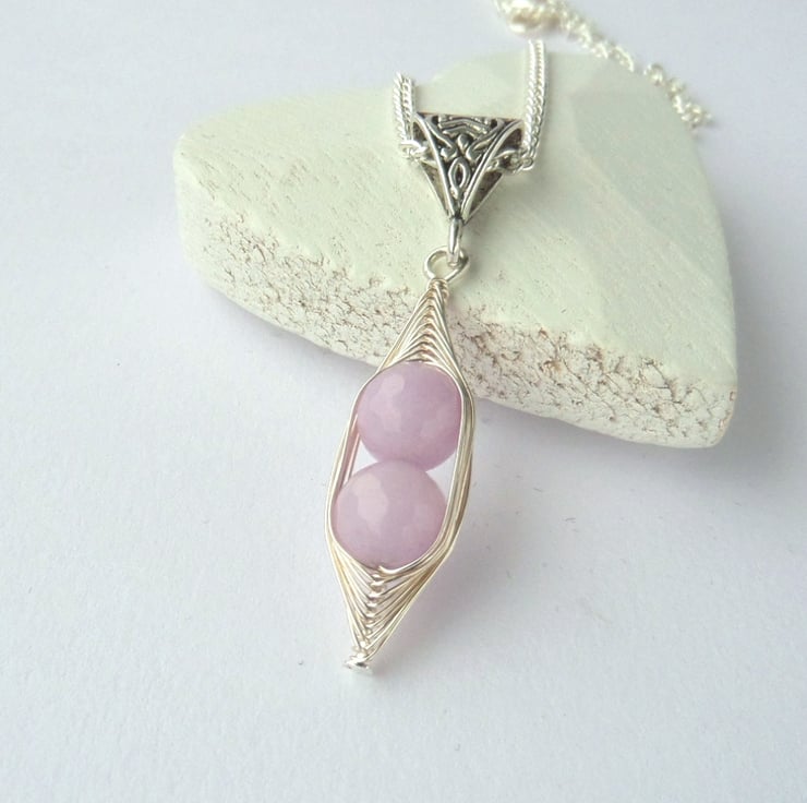 A pretty handmade necklace, made with delicate lavender jade in a 'Peas in a Pod' style.