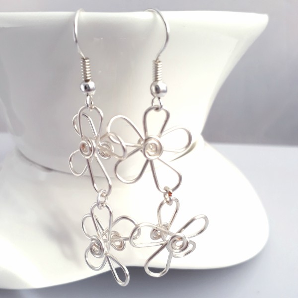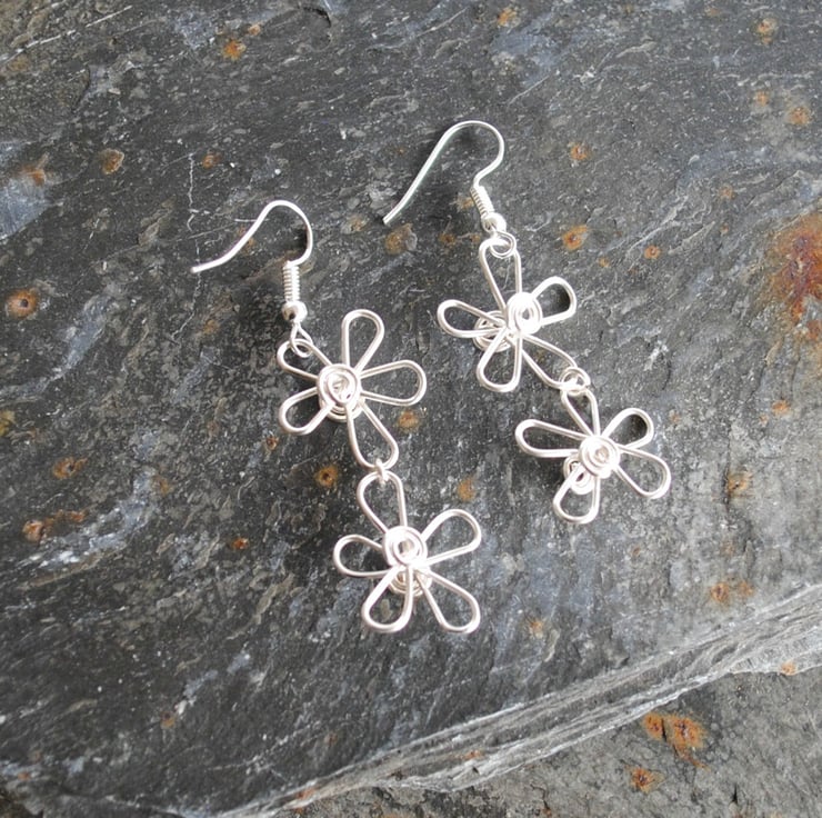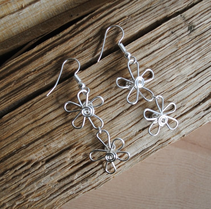 A pair of handmade silver wire daisy flower earrings. Perfect Christmas gift for gardeners.