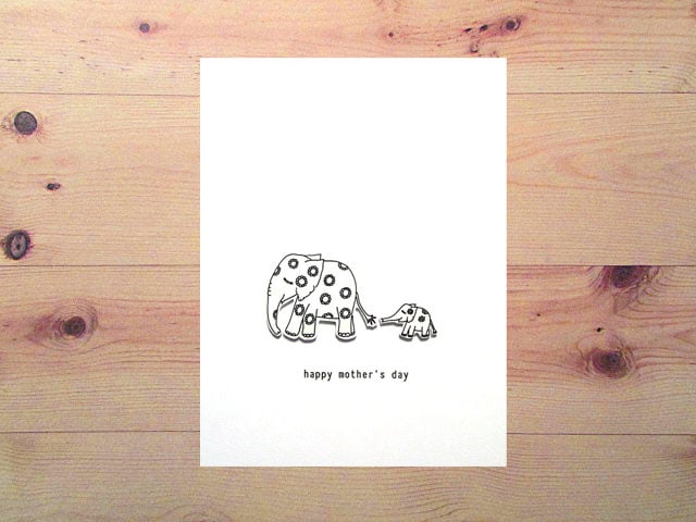 Hand drawn white shrink plastic elephants on an A6 white card with envelope.