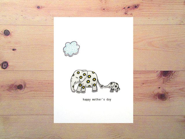 Hand drawn clear shrink plastic elephants and cloud on an A6 white card with envelope.