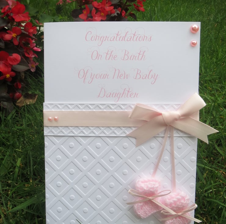 Lovely handcrafted New Baby Girl card, made with care and lots of attention to detail,
