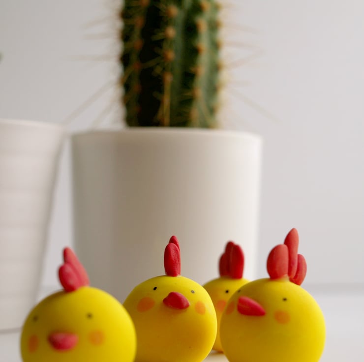 Lovely little Springtime chicks handcrafted from Fimo and baked in the oven!