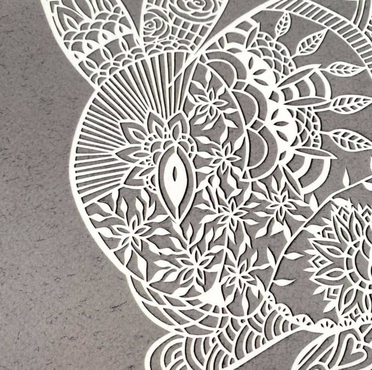 The original papercut was hand cut using just a scalpel on soft white murano paper.