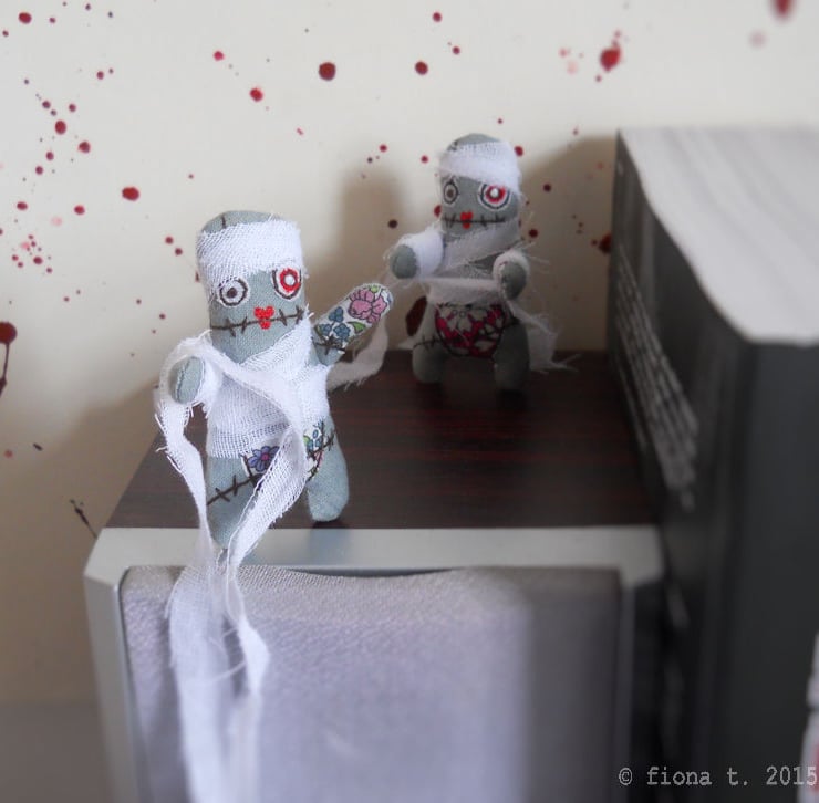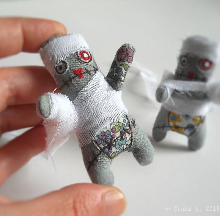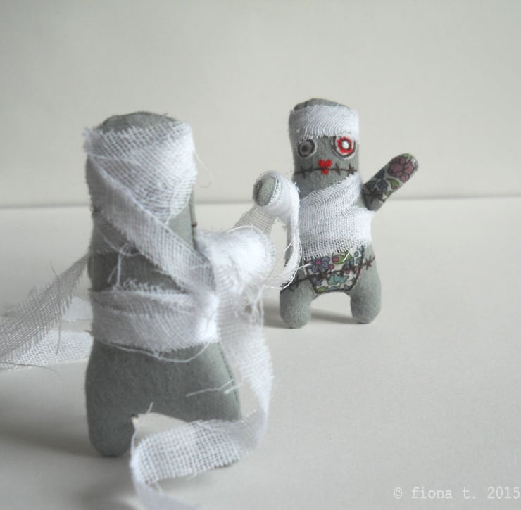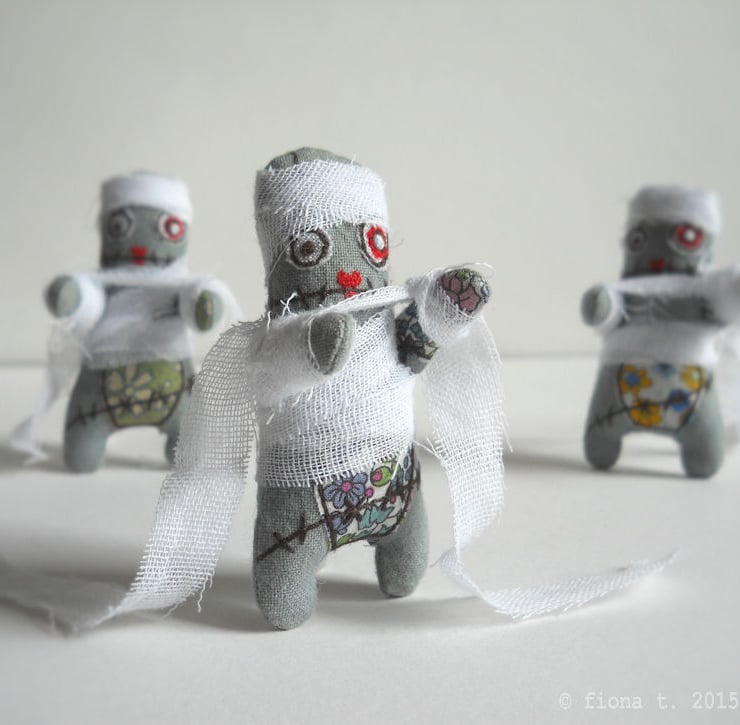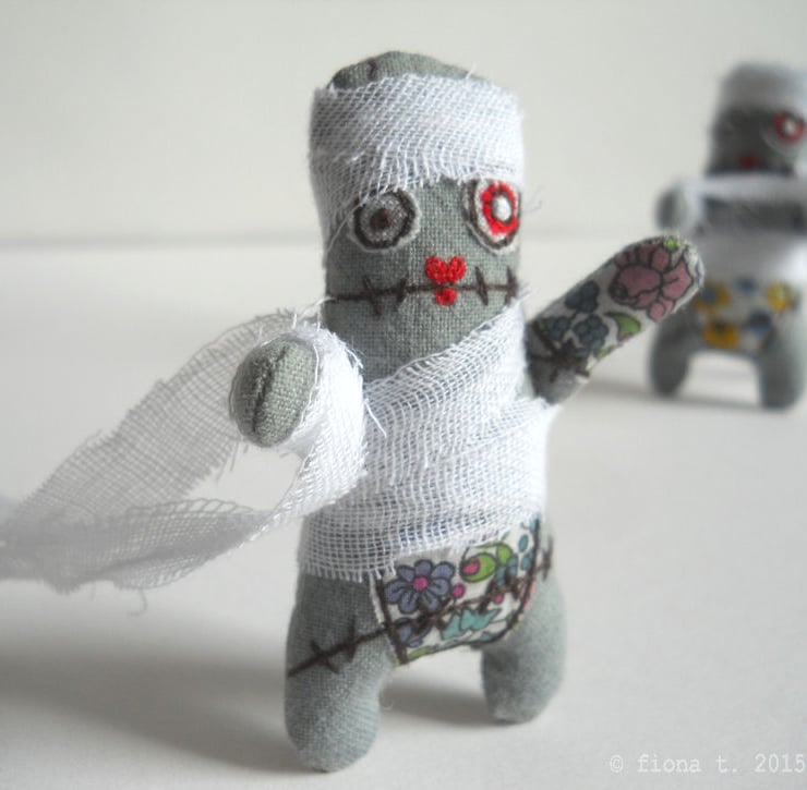 free motion embroidered zombie mummy miniature.