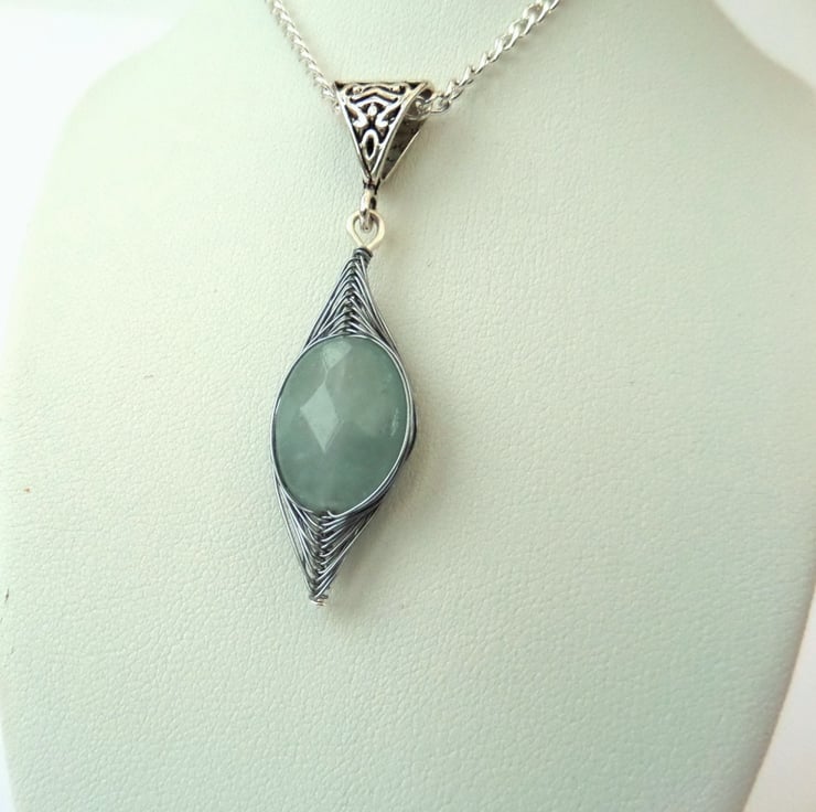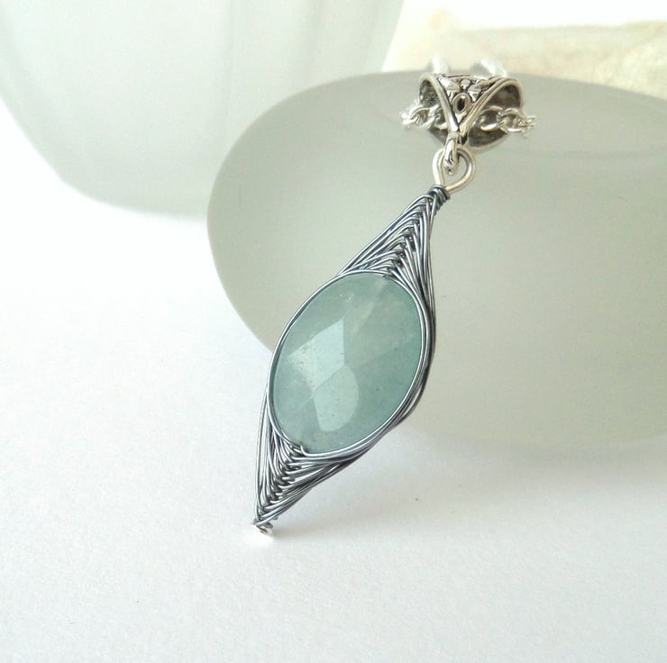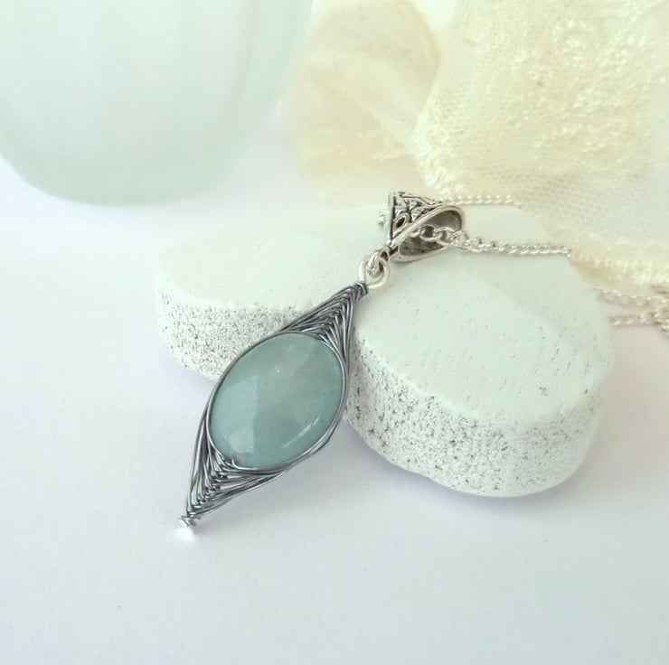 I have wrapped the aquamarine with smokey grey coloured wire that accentuates the beauty of this wonderful stone.