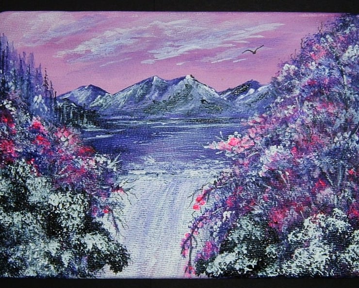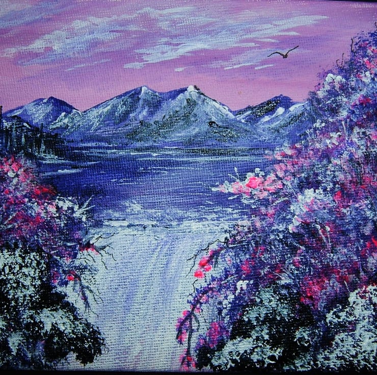 This is an original painting that has been created using quality materials. It will come in a clear polybag to protect it. This is an original and not a print. This is an acrylic painting on canvas board and measures approximately 7" x 5".