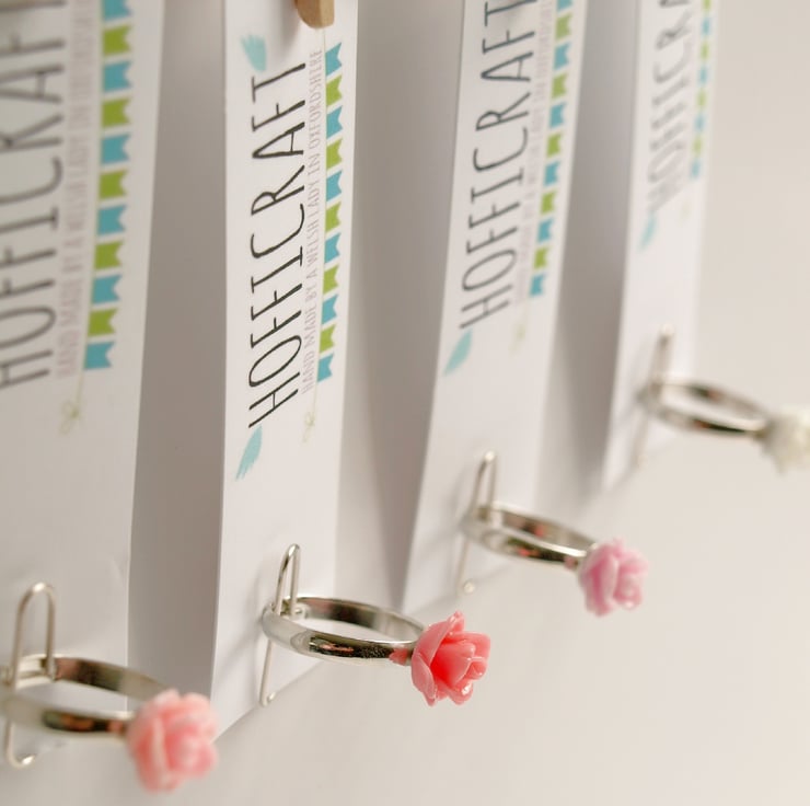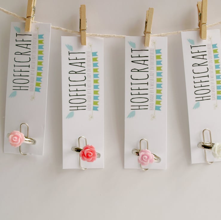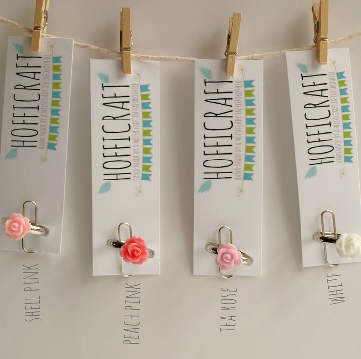 A little 1 cm resin rose mounted on an adjustable silver plated ring.