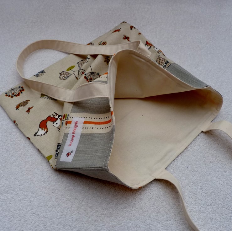 I have designed and created this useful tote bag from upholstery weight fabric. The bag is fully lined with a natural cream cotton and is top stitched for a professional finish.