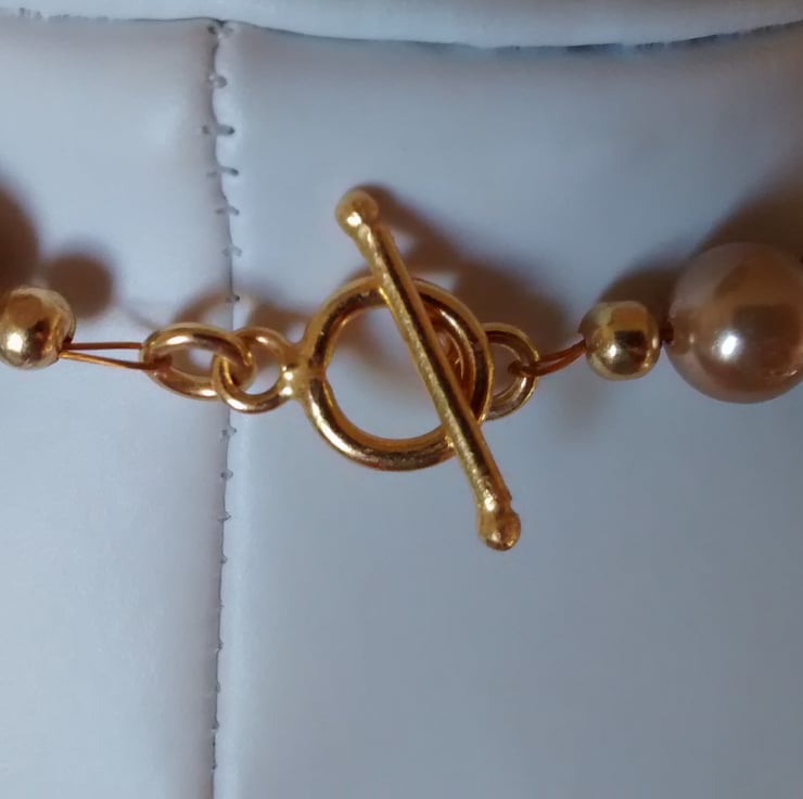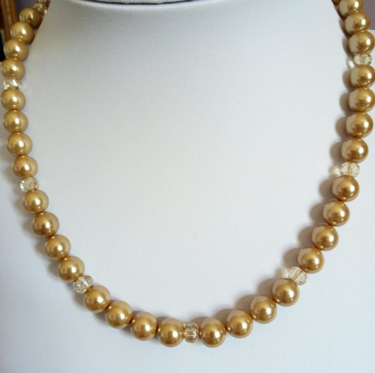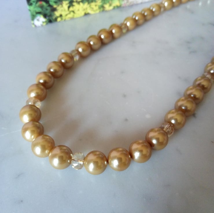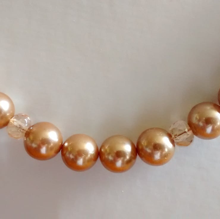 CHAMPAGNE PEARL NECKLACE WITH CHAMPAGE SHELL PEARLS AND LOVELY CHAMPAGNE CRYSTALS.
