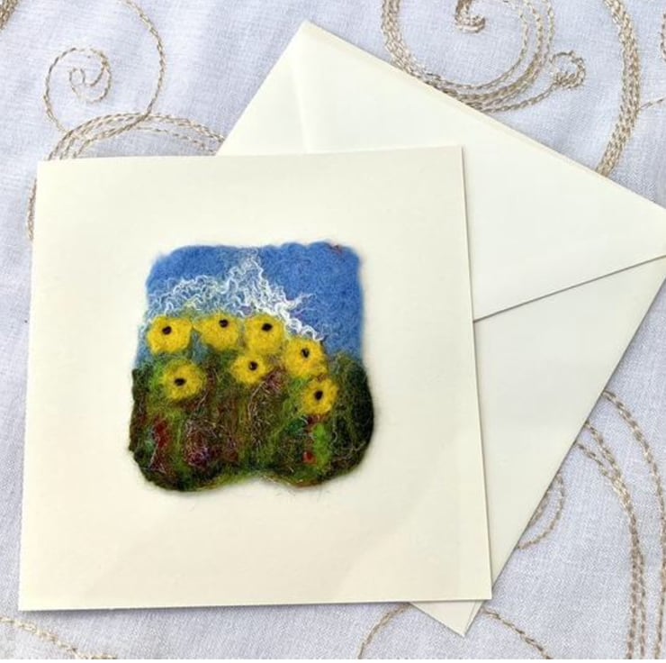 The felt picture was inspired by one of my watercolour paintings. I was fascinated to know whether it would transfer into a felt piece as I love textured felt on cards....