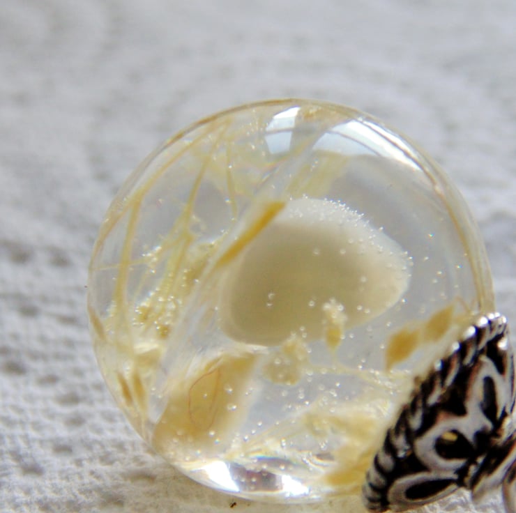 Description: Custom order, milk tooth preserved in crystal clear, eco friendly, non toxic uv resistant resin. This orb measures around 20mm, I have capped with a lovely silver plated cap pics 3 and 4. can be hung on any length of chain and choice of bronze or silver plated for caps and chain.. Pic 1 and 2 show example with the tooth floating to centre of orb surrounded by forget me nots, pics 3 and 4 with some creamy babies breath. If you prefer another choice of flower let me know.
