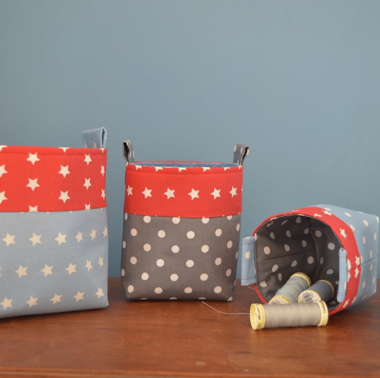I love making these fabric baskets. They are useful for all those bits and bobs that end up getting lost around the house. They look great too!