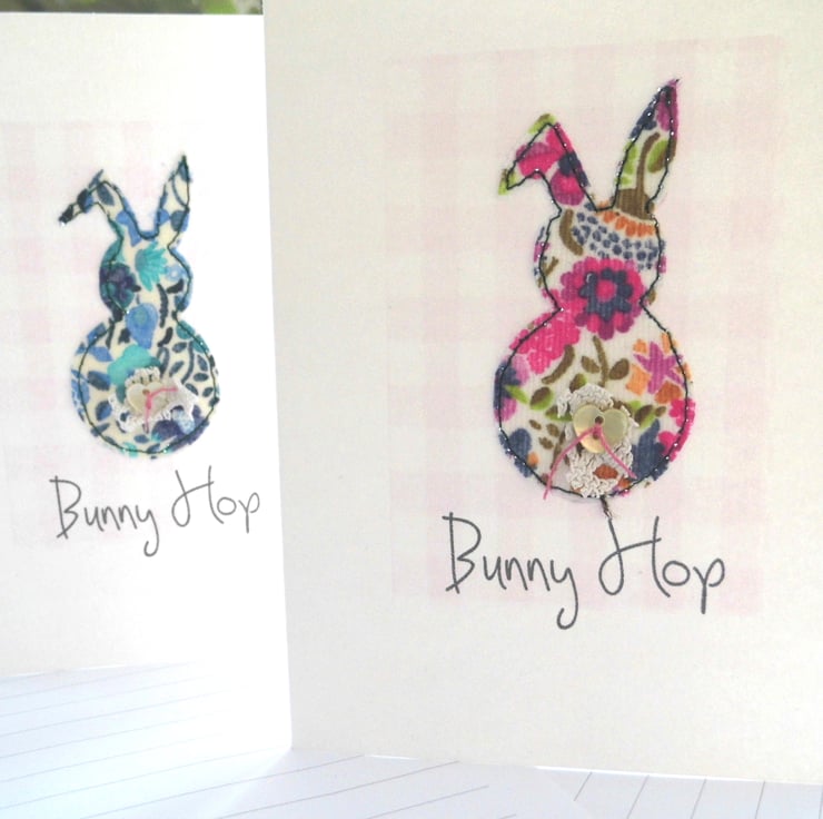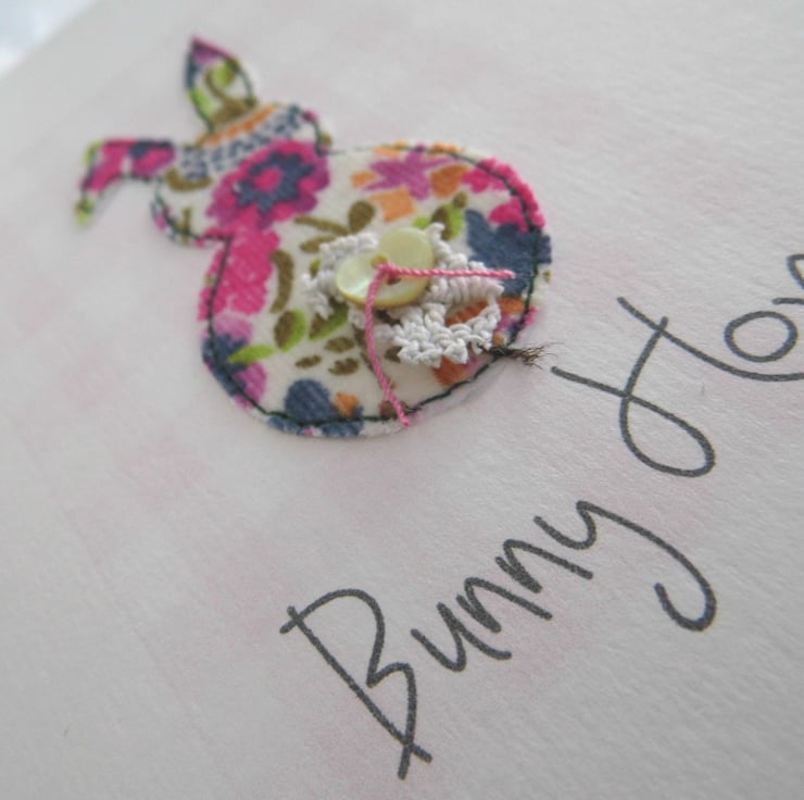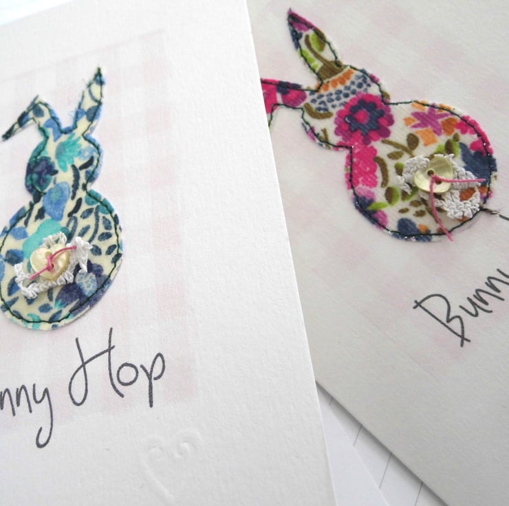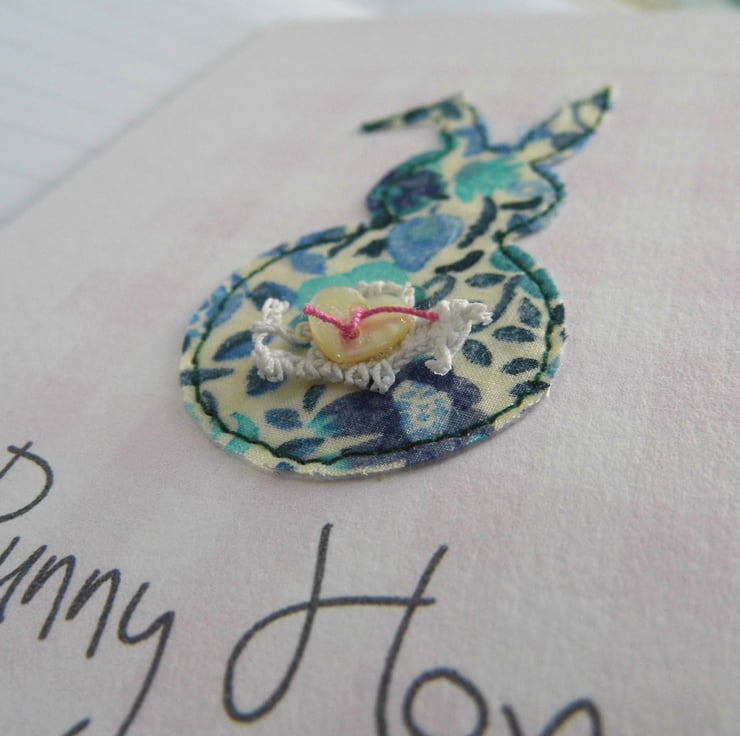 liberty print fabric bunnies with little button heart tails perfect for birthday wishes