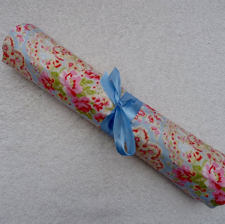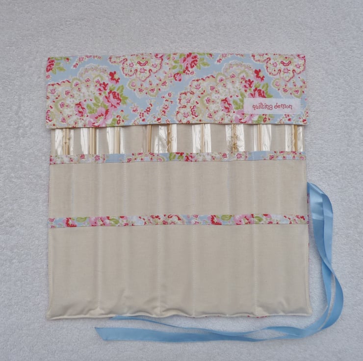 I have used a lovely 100% cotton Cath Kidson fabric to create this fantastic knitting needle case, which is lined with a plain cream cotton fabric.