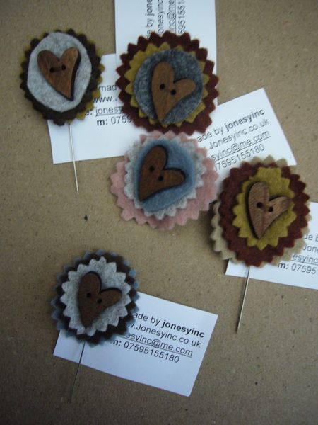 I love mixing colours, and making these versatile unisex badges/brooches allows me to mix and match - and then add some interest with buttons and beads at the centre