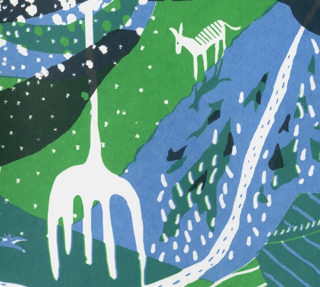 A continuation of my donkey theme for this print, but perhaps a little more loose and abstract in places. I decided to try and create a secret world that only donkeys know about, and it turned out like this! The print is also a rarity for me, being in landscape orientation (rather than portrait).
