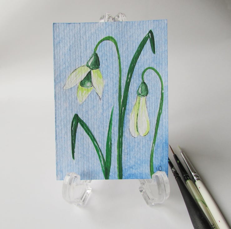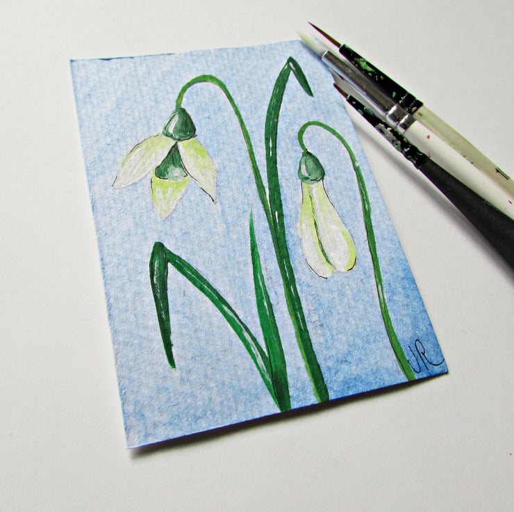 An original ACEO using Acrylic paints of Snowdrops, also known by the name Candlemas Bells, painted onto good quality acid free Art Paper.
