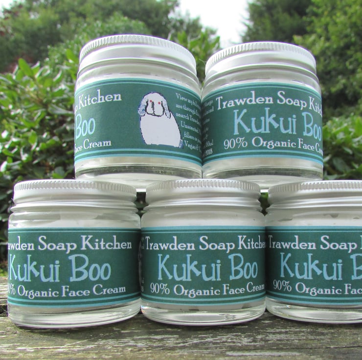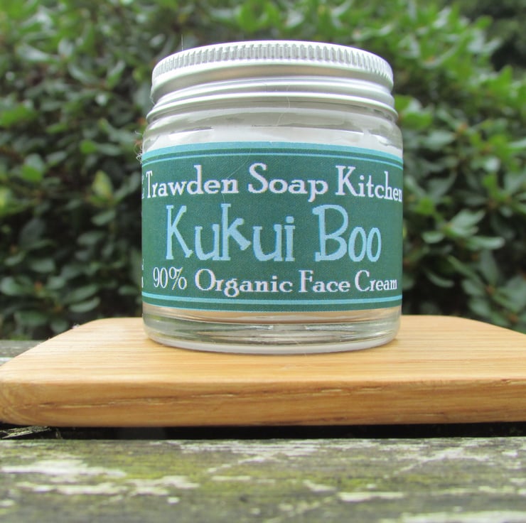 Kukui Boo Facial Cream is a rich moisturiser full of truly amazing ingredients. 100% natural, 90% organic. It has never been animal tested and is vegan friendly. You'll find no fillers, waters, preservatives, colour or added fragrance. It has a lovely coconut scent (courtesy of the best quality Organic, Fair Trade Coconut butter). This comes in a 60ml glass jar, a little goes a long long way