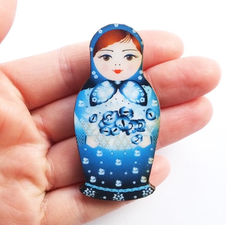 You will receive the brooch photographed. This Matryoshka dolly measures 5.5cm tall.