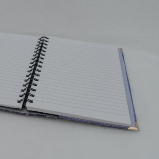 This notebook cover comes complete with an A5, 100 sheet, 80gsm, lined, spiral bound notebook with a hard back cover, which once used can be replaced with a readily available equivalent notebook or sketchbook.
