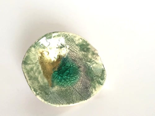 I love to combine the translucency of glass with ceramics, the finished piece has a very natural elemental look.