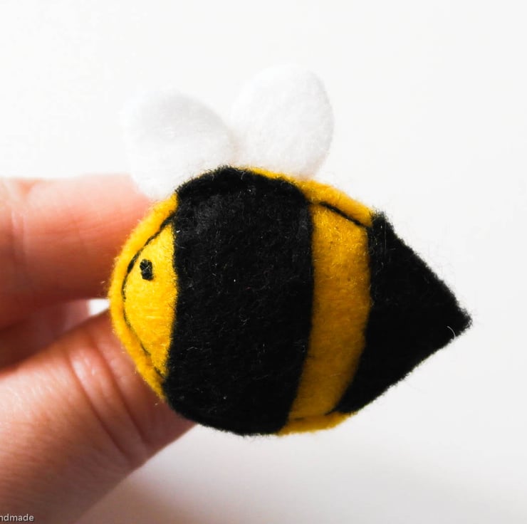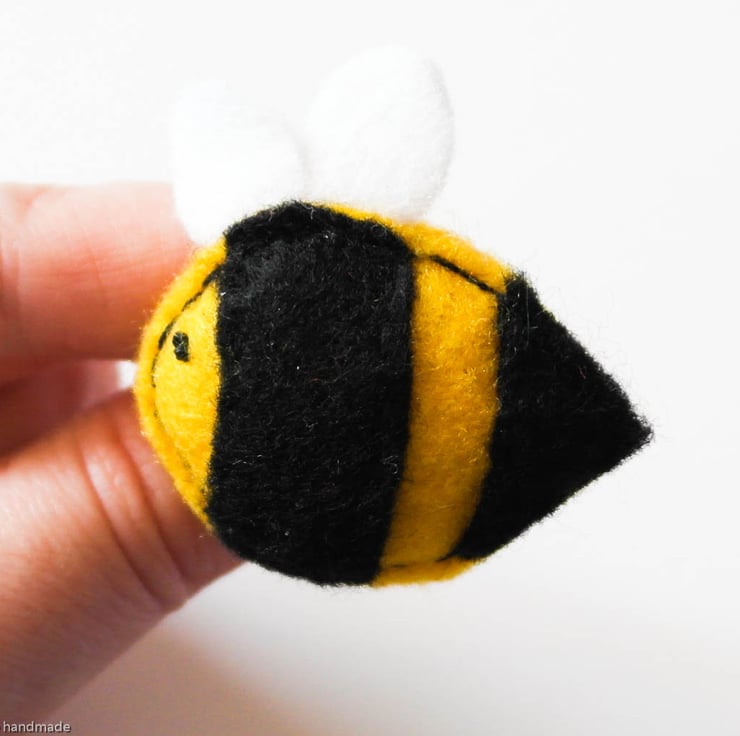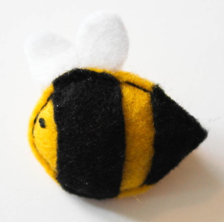 A cute handmade bee brooch. this little bee would look so cute pinned to a jacket or bag and is happy to go anywhere with you. This would be great gift for a bee keeper.