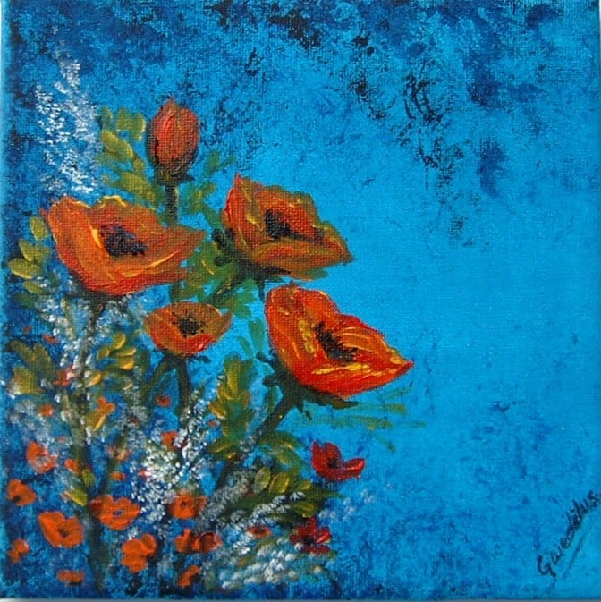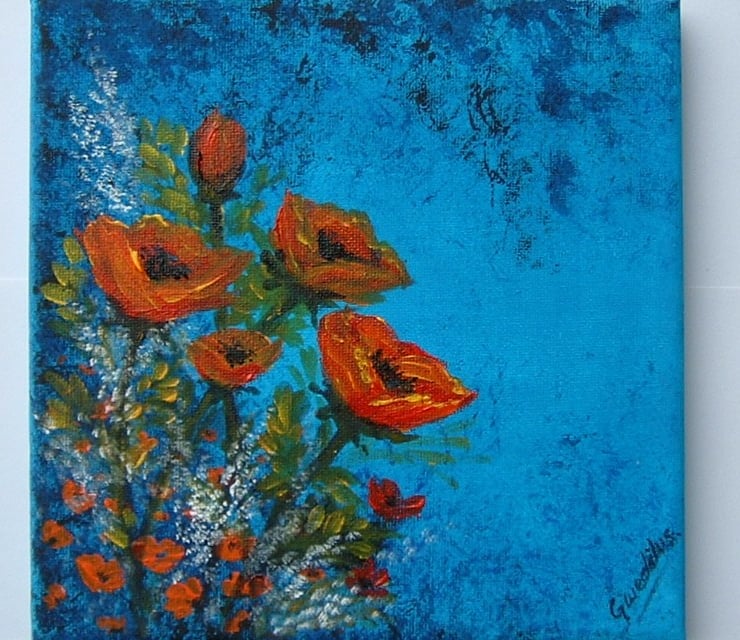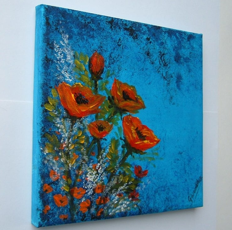 This is an original painting that has been created using quality materials. It will come in a polybag to protect it. This is an original and not a print. The painting is acrylic and the canvas measures approximately 8" x 8" x 1/2" in depth. It requires no frame and is ready to hang.
