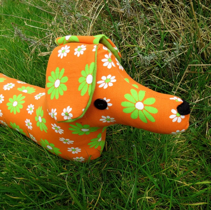 She is made from a fabulously groovy 1970s flower power fabric.