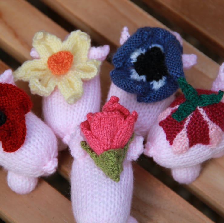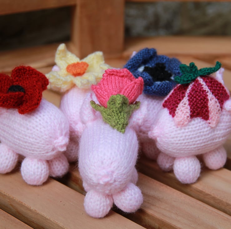 Flowers & piggies - a great way to bring Spring into the home! The flowers are inspired by and adapted from the ones I have been knitting (and trying very badly to crochet) from the fabulous book by Lesley Stanfield (thank you to my equally fabulous husband for a thoroughly absorbing Christmas present!!).
