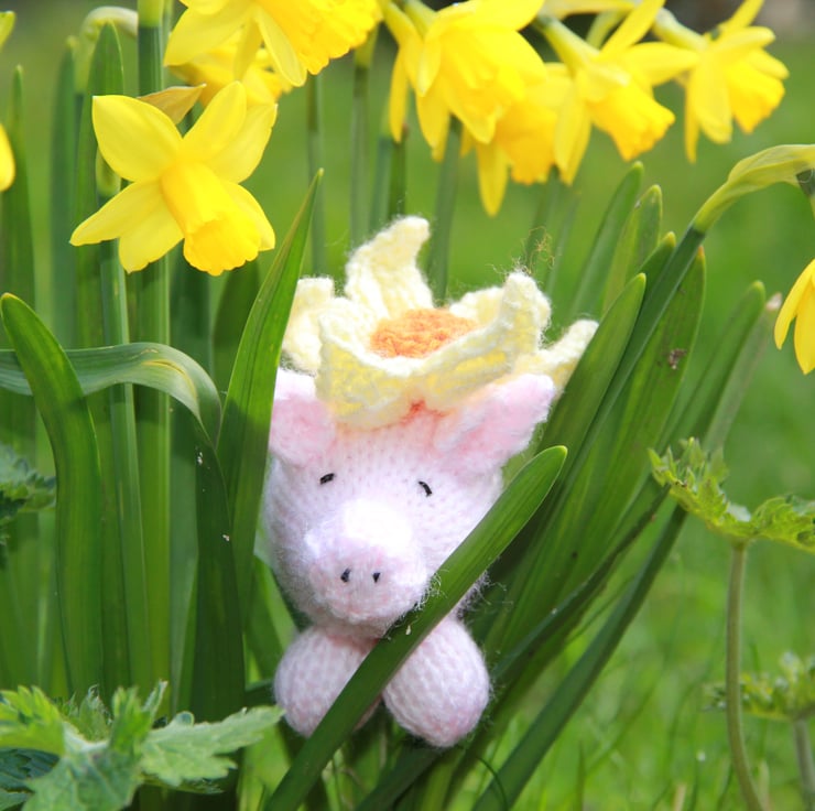 A gorgeous piggy with a daffodil hat to celebrate Spring!